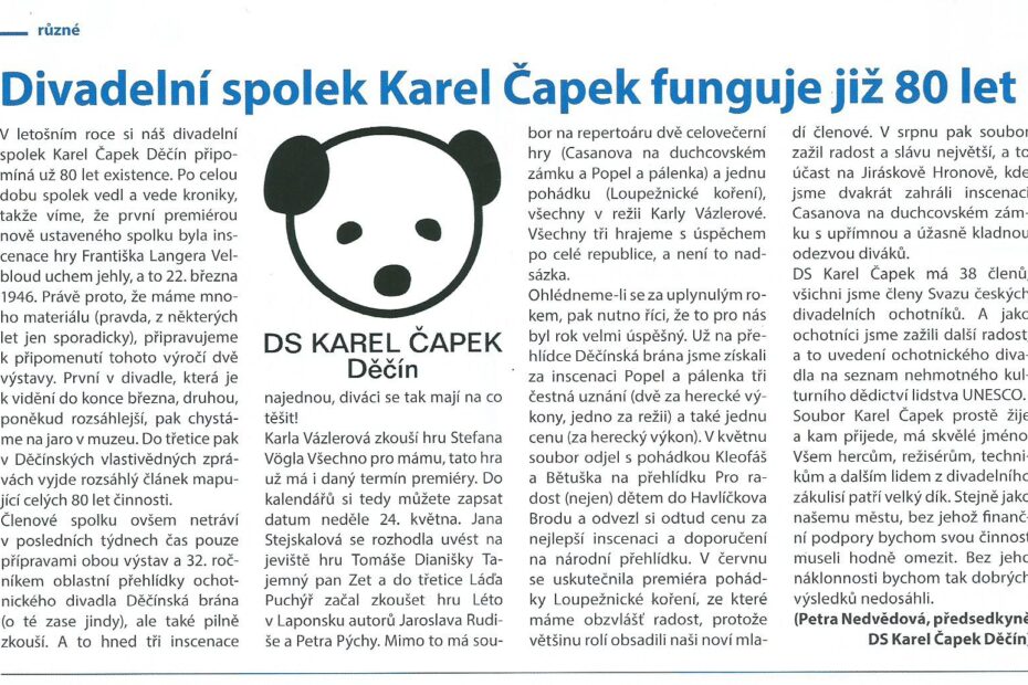 Ohlédnutí za loňským rokem, výhled na ten letošní a co se chystá v rámci oslav 80ti let našeho souboru – to vše v článku pro aktuální Děčínský zpravodaj: